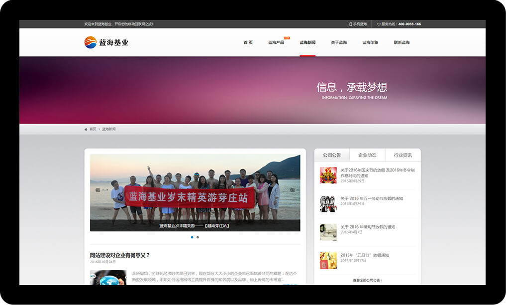 藍(lán)海基業(yè)源于2004年,秉承以數(shù)字化興企、引產(chǎn)業(yè)興城的理念,深耕品牌數(shù)字化領(lǐng)域和營(yíng)銷數(shù)字化領(lǐng)域。